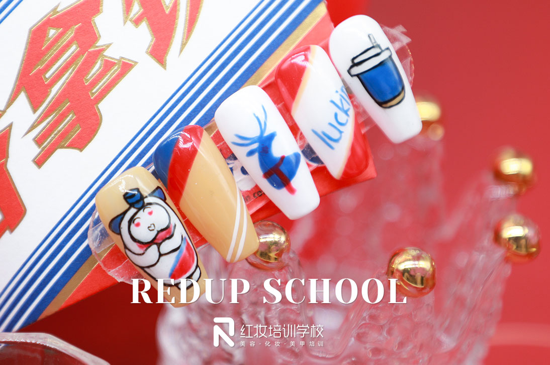 总之,手绘酱香拿铁美甲不仅具有时尚感和艺术价值,还是一种女性展示个性和品味的工具。这款美甲让女性在举手投足之间都散发出自信和优雅的气质。如果您是一位追求完美的女性,那么手绘酱香拿铁美甲值得您尝试。在海口学美甲就到红妆学校。