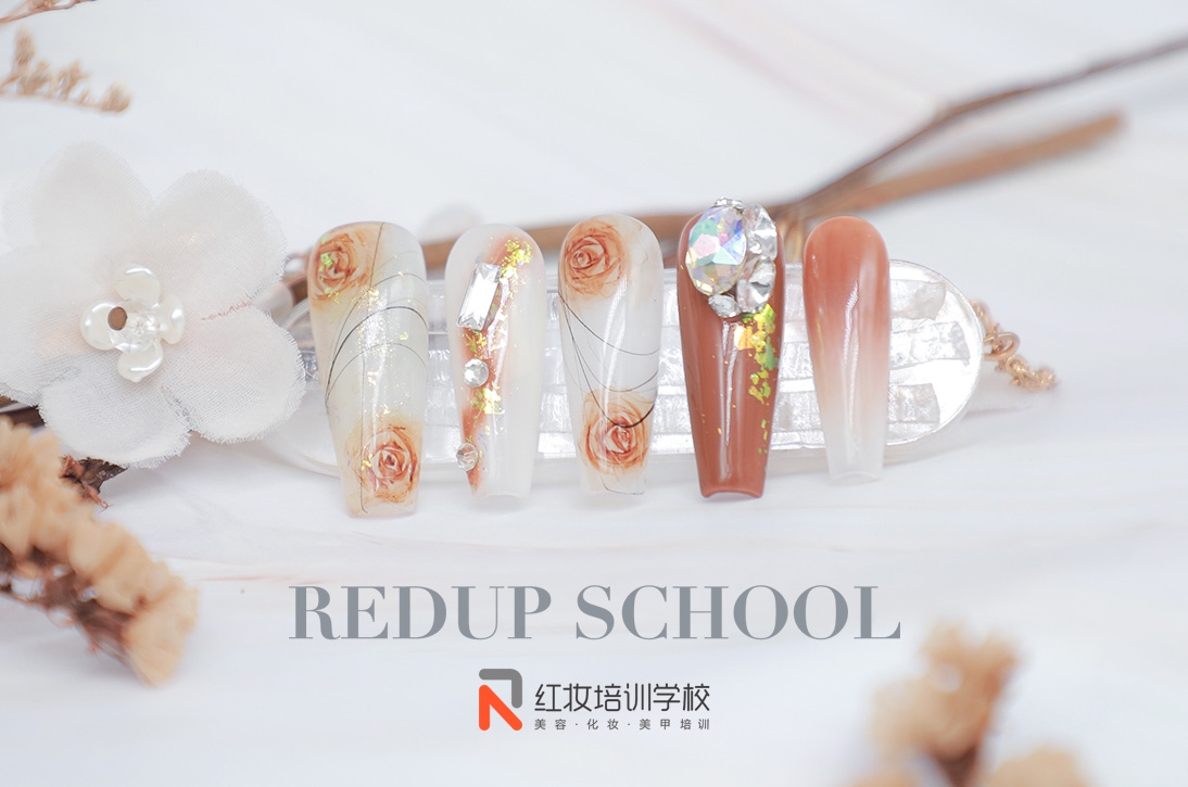 当秋天的微风轻轻拂过,你是否感受到了那份浪漫与神秘?今天,海口红妆美甲培训学校带大家共同探索一款秋日微醺玫瑰美甲,为你指尖增添一份独特的魅力。