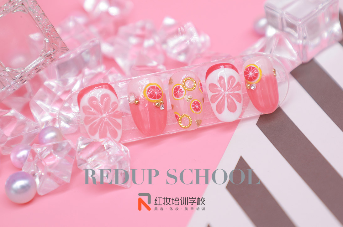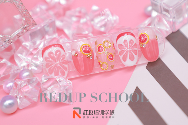 这款西柚派对美甲作品不仅展现出西柚色的美丽和多种美甲风格的魅力,还融合了多种创意和时尚感。通过这款美甲作品,大家能感受到时尚和美的热爱和追求。同时,也希望它能为大家带来一些灵感和启示,让每一个女孩都能找到属于自己的美丽和风格。想要学美甲,就到红妆学校吧。