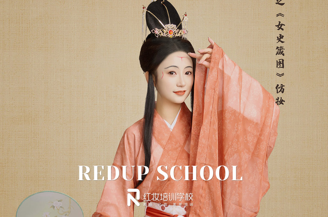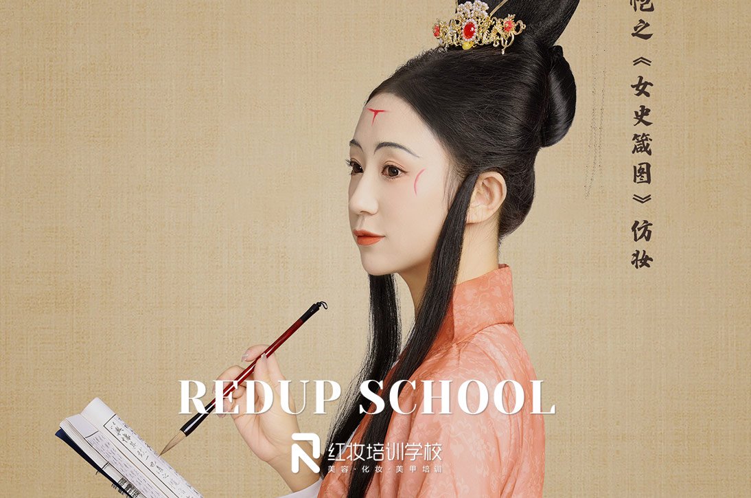 在本次仿妆创作中,红妆化妆培训学校选择了《女史箴图》中的一位宫女作为仿妆对象。通过深入了解这幅名画的历史背景、文化内涵和审美特征,尝试用现代审美观念来展现画中宫女的古典美。
