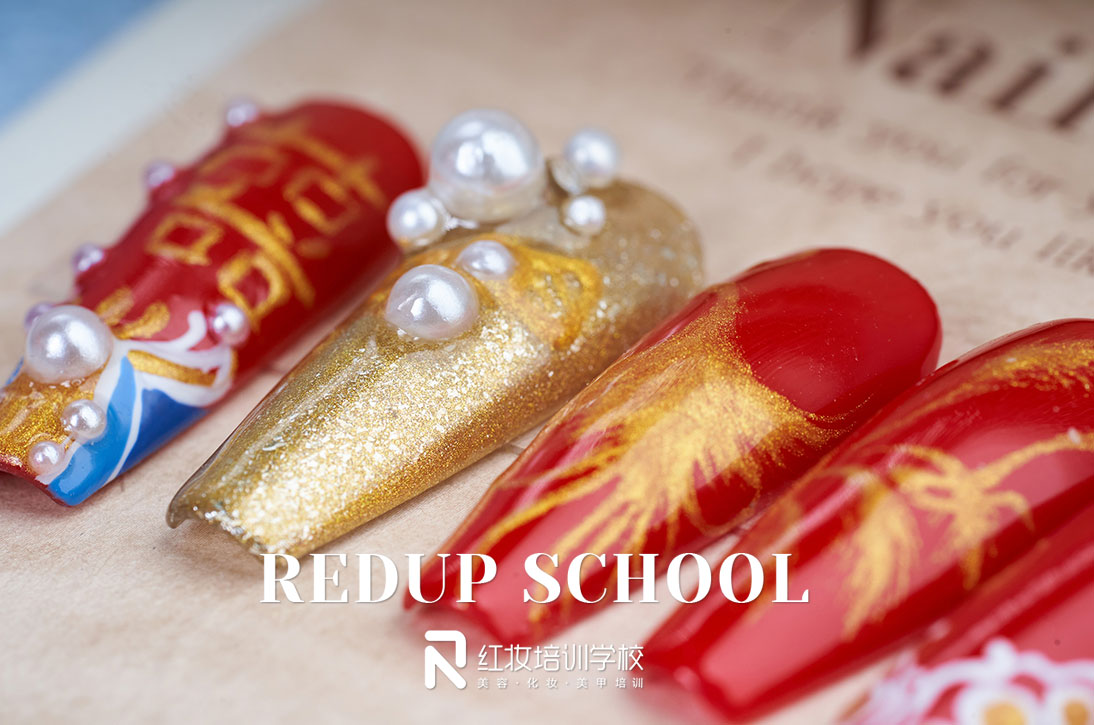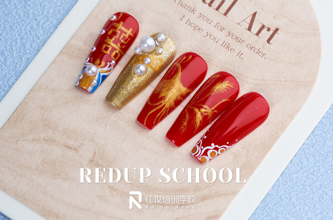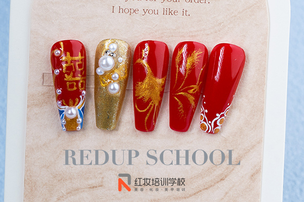 中式秀禾婚甲,红色贵气又喜庆。十月黄金婚礼季,零基础来解锁新技能,学美甲就到红妆学校。