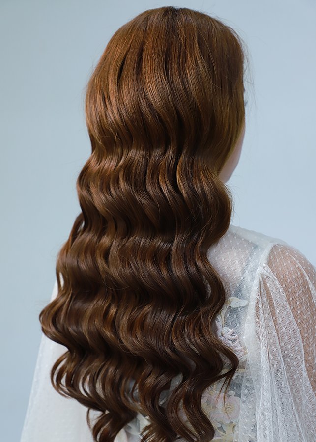 步骤4、烫发前的基本保养做好了,现在就可以开始烫发了,烫水波纹卷发要用蝴蝶棒,你可以根据自己的要求来卷,卷的时候可以分成一束束或者分层进行,待全部卷完后就一款漂亮的水波纹烫发就出来了。