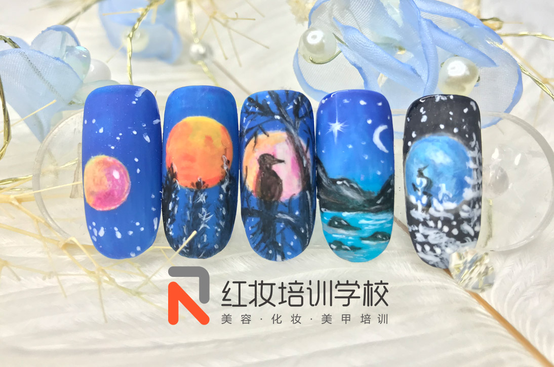 中秋节吃月饼同时不要忘了做一款应景的中秋美甲哦。想学习美甲技能,欢迎来红妆学校报名学习哦。