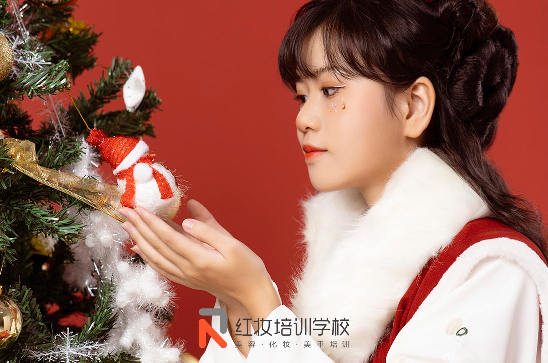 有化妆基础的小姐姐一看妆容特色的介绍,马马就会应景出一个圣诞妆容,但是新手化妆小白估计眼睛学会了,真正画起来就会状况百出了。画不出不要着急,新手小白学化妆也可以来红妆学校报班学习,红妆学校针对不同基础的人开设了不同课程的化妆班,无论是新手小白,还是进阶专业化妆师,在这里有化妆讲师授课,丰富的教学经验,简单易学上手快,想学习化妆的你,就快加入红妆学校吧。