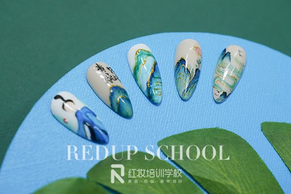 手绘美甲是美甲课程中的重点内容之一,运用各种类型的绘画笔,蘸取丙烯颜料在指甲或甲片上绘制各种艺术图案的美甲艺术表现形式。精致中又不重样,这样的美甲让人过目不光,只看一眼就能喜欢上,不用担心会和别人“撞款”了。想要学习手绘美甲就到红妆学校吧。