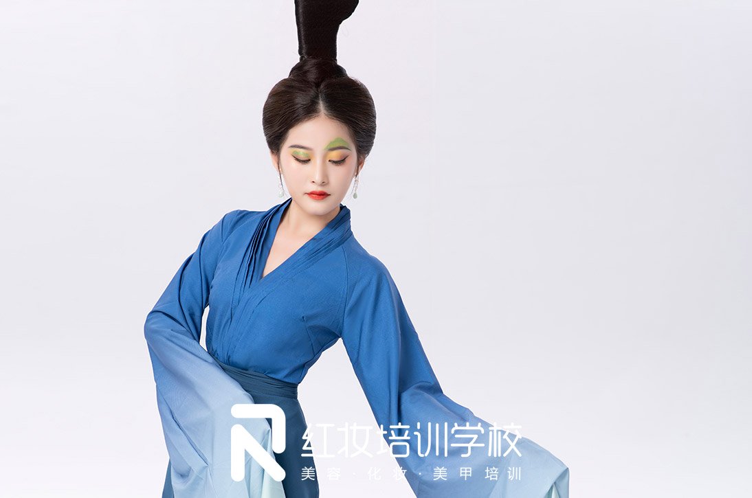 《只此青绿》巡演火爆海口,将千里江山画在脸上会是怎样的惊艳呢?一抹青绿晕染的古典美,眉眼间的绵延河山,典雅大气又不失灵动,展现国风时尚感。学化妆选红妆学校,带你玩转古典国风青绿妆。一起来欣赏下千里江山灵感妆容作品吧。