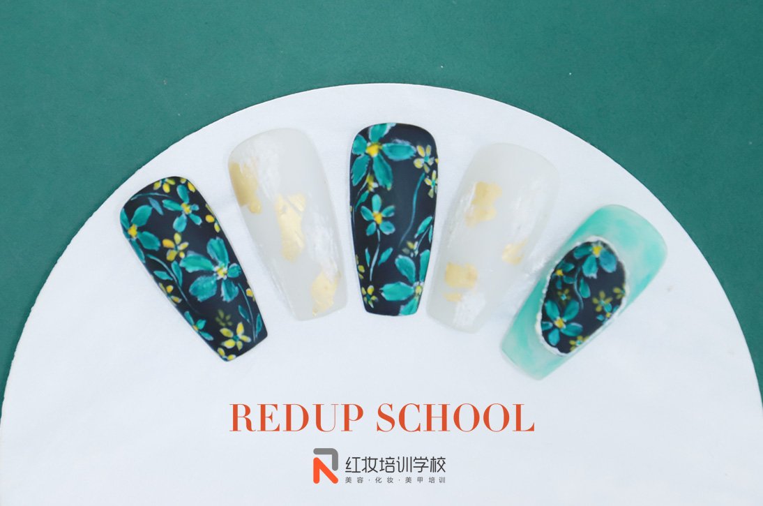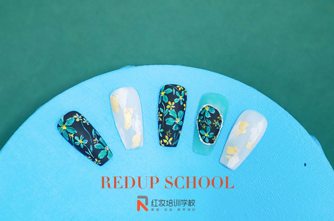 经常做美甲的小姐姐可能会注意到在挑选美甲颜色的时候会分为2个色系,一个是暖色,一个是冷色。暖色会让人感觉很温暖,冷色会让人感觉很凉爽。但不管什么色系,主要看搭配怎样的图案,选择对了款式,适合自己才会更加突显光彩的气质。今天带大家欣赏一组海口红妆学校美甲技能班学员出品的墨绿系美甲吧。