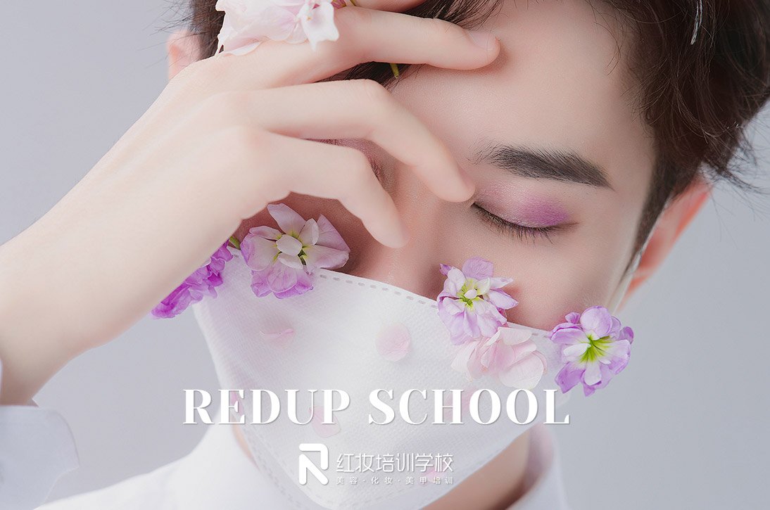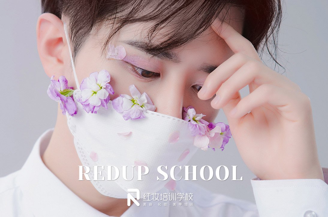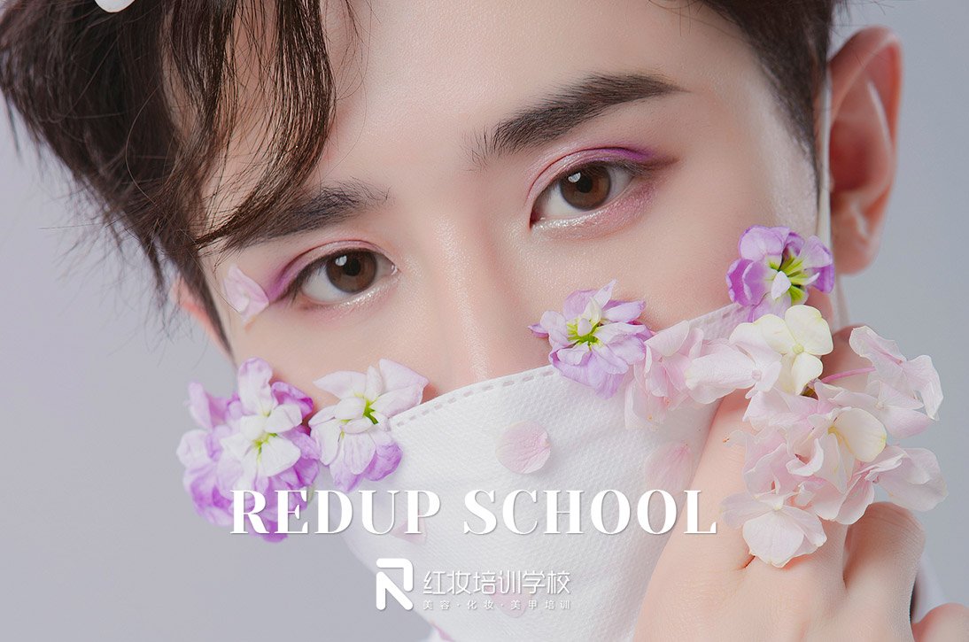 红妆学校的春日鲜花口罩妆,男生也可以又美又飒!鲜花元素,绽放春意,粉紫渐变眼影碰撞,更增添眼部灵动氛围感,看到这个妆容,你有没有心动呢?