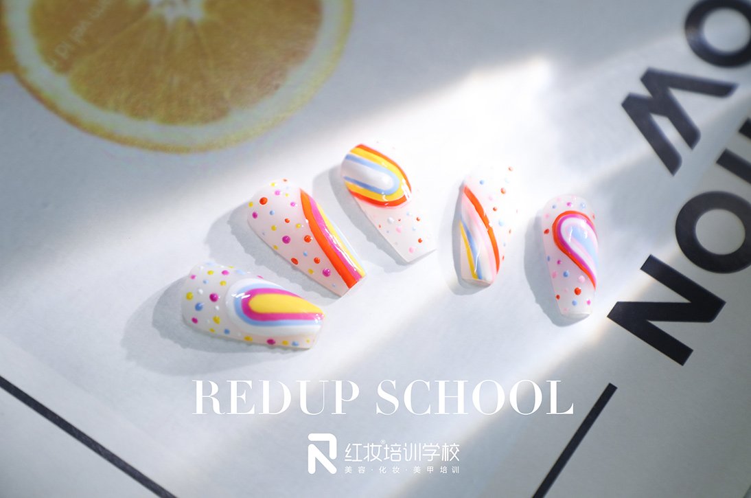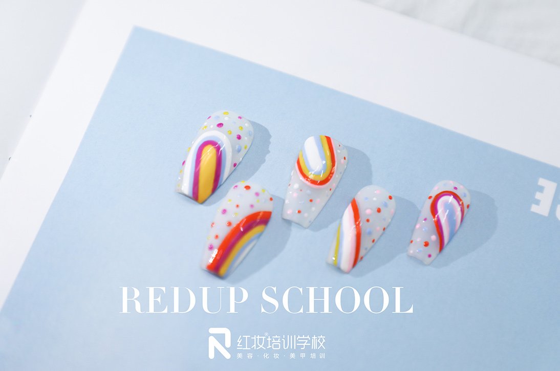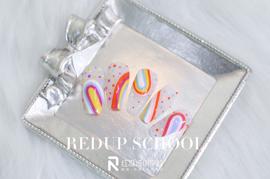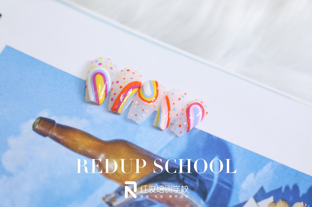 说到夏天,那必须是缤纷多彩的世界。天气不好也要心情好,斯人若彩虹,遇上方知有,夏日彩虹雨美甲,手绘涂鸦小雨点,甜美度一百昏。下面一起来看看海口红妆学校新款美甲作品——夏日彩虹雨美甲,童趣美甲,怎么搭配都好看哦!
