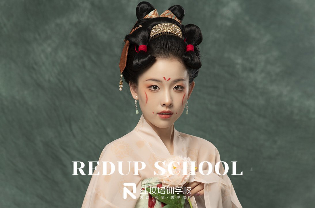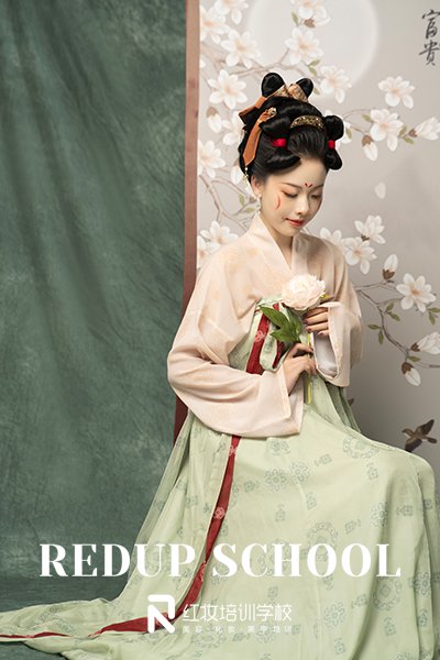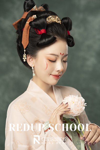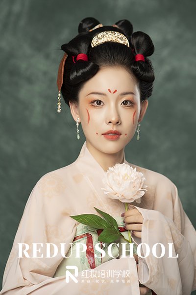 想要掌握扎实的化妆技能,必须要选择正规的化妆学校,海口学化妆就选红妆学校,学校好不好,化妆作品能看出真才实学,下面带大家一起来欣赏红妆学校出的唐风芍药抚颜妆,面带浅笑含双靥,两颊月形斜红妆,顾盼流连,时光搁浅白芍花开,只愿等你。