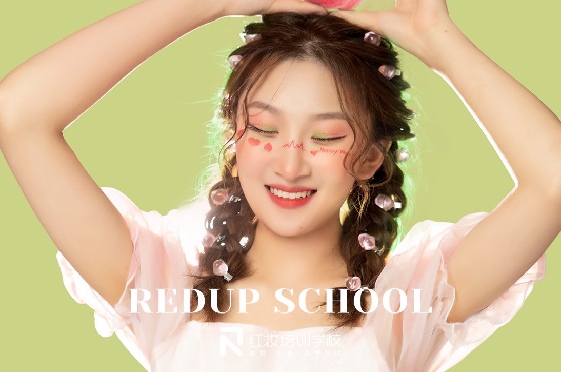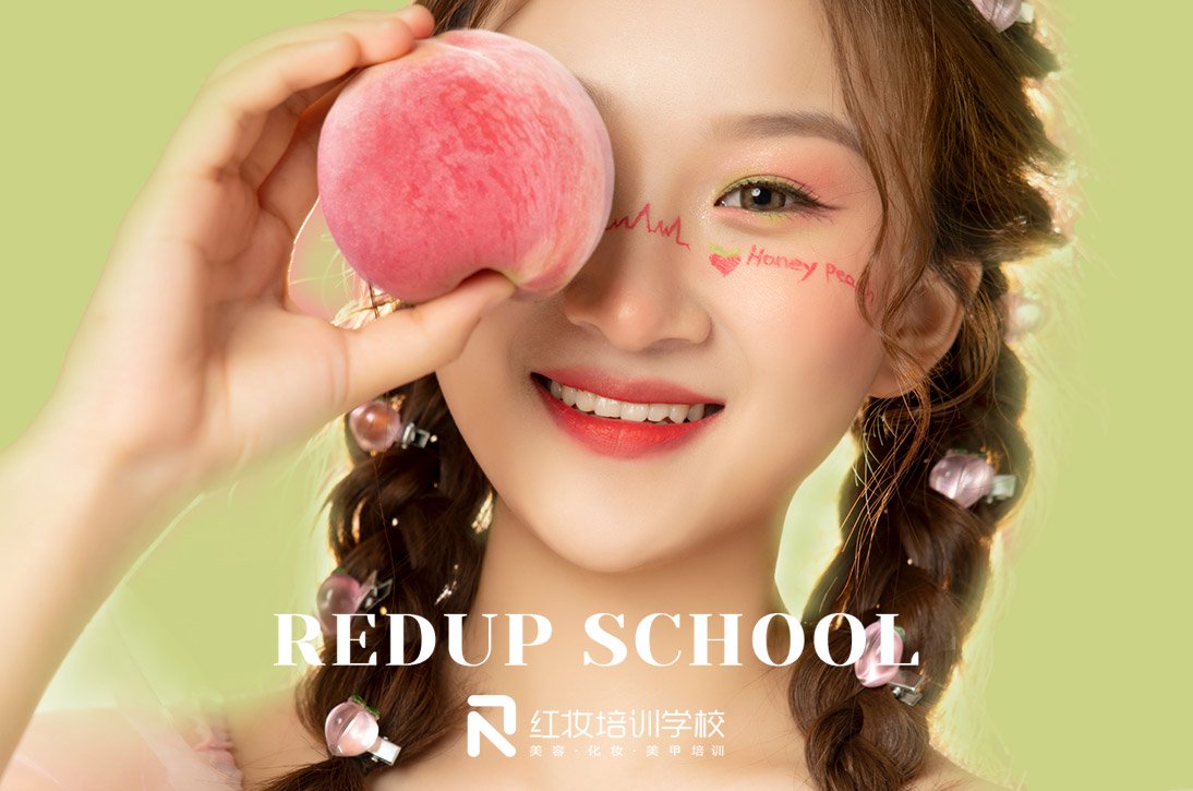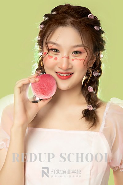 大多数女孩子是偏爱甜美系妆容的,海口红妆学校化妆技能班的考核作品——蜜桃甜心妆造,简直太可爱了。以元气桃子腮红,发射爱的动感光波,用初恋般甜美笑容,散发夏日的无限魅力。一起来看看妆容特色吧。