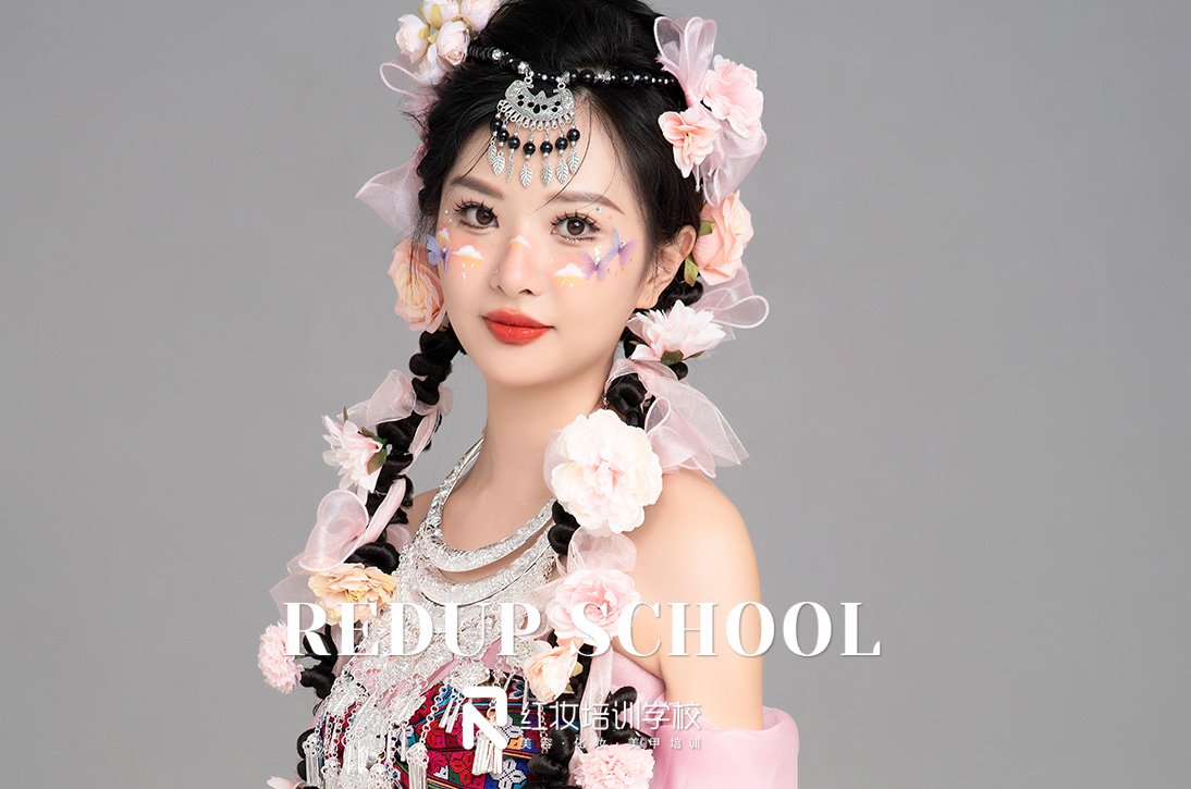 传统与现代的创意碰撞,民族印象,异域风情的表达。最近西双版纳的哈尼妆风靡全网,打开社交软件,满屏都是哈尼族美女,无论是轻摇裙摆还是回眸一笑,都不禁让人怦然心动,异域风情甜妹感呼之欲出!作为民族妆造的推崇者,这么独具特色的哈尼妆我们自然不会错过。新学期新风尚,红妆学校推出大型民族印象·妆造计划,第一期『哈尼甜心妆』,结合民族传统服饰与现代创意妆造,激发学子创作灵感。让我们一起感受专业老师用妆容演绎民族的魅力!