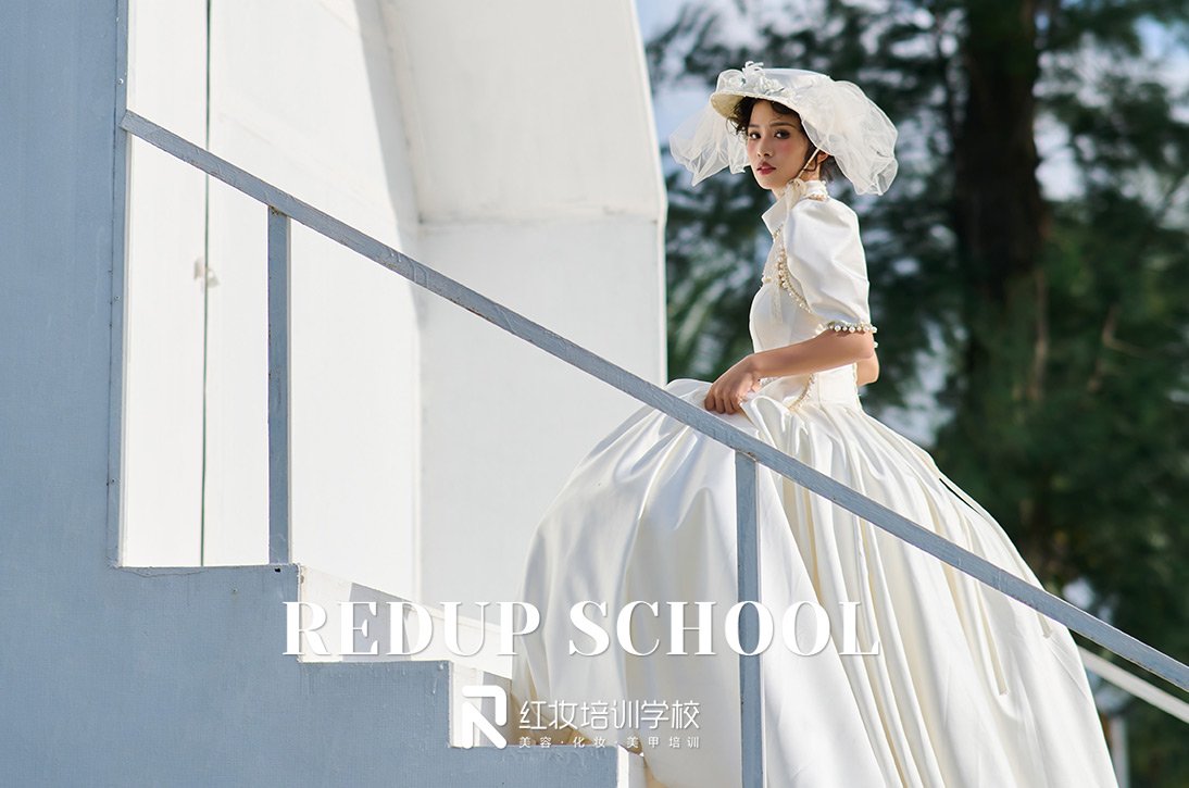 搭配复古蕾丝复古婚纱让自然的好气色显露出来。也让女孩子的温柔含蓄体现出来,适合喜欢复古油画风造型的姐妹们哦。学化妆拥有一技之长,可以随性解锁不同的妆容,期待姐妹们来红妆学校打卡解锁自己喜欢的妆容哦。
